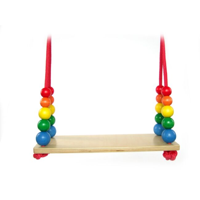 Jednoduchá hojdačka s drevenou doskou v prírodnej farbe s ozdobnými farebnými guličkami bez opierky chrbta je určená pre staršie deti. Umožňuje im pri hojdaní viac pohybu a voľnosti. Je určená pre zavesenie na bezpečnostné (najlepšie točivé) háky, ktoré ale nie sú súčasťou balenia. Vyrovná sa uvoľnením šnúry. Hojdačku je môžné použiť vo vonkajších aj vnútorných priestoroch. Je určená iba pre domáce použitie (nie pre verejné ihriská). Neodporúča sa hojdačku inštalovať nad betónový, asfaltový či iný tvrdý povrch. Pre dlhšiu životnosť sa odporúča chrániť hojdačku pred priamymi poveternostnými vplyvmi.