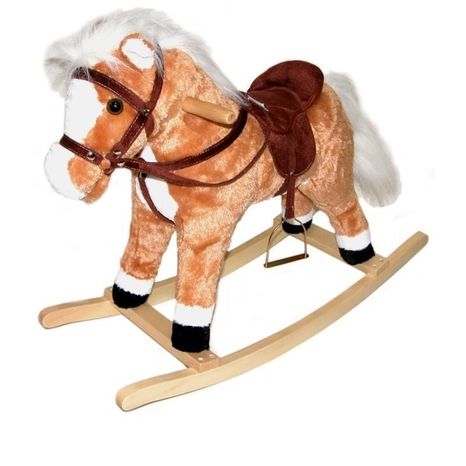 Tento krásny bielo-hnedý drevený hojdací koník so sedlom so strmeňmi je snom každého dieťaťa, ktoré miluje koníky. Koník je strednej veľkosti, je vyrobený z mäkkého hebkého plyšu a vďaka robusnej drevenej konštrukcii a dreveným držadlám zabezpečí deťom bezpečné hojdanie a veľa zábavy. Okrem toho koník vie erdžať a vydávať zvuky cvalu vďaka baterkám, ktoré sa vkladajú do bateriového boxu na bruchu. Stlačením ucha sa zvuky aktivujú. Pri hojdaní dieťa trénuje hrubú motoriku a učí sa držať rovnováhu.