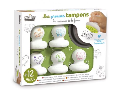 Táto sada 5 veľkých penových pečiatok s domácimi zvieratkami z farmy poteší všetkých malých umelcov. Deti si vďaka nim môžu vymyslieť svoj vlastný kreslený príbeh plný zvieratiek. Pečiatky odtlačia a následne vyfarbia podľa vlastnej fantázie. V balení je aj atramentový pečiatkovací vankúšik s čiernou farbou. Poduška má plastový kryt, aby tampón s farbou nevyschol. Pečiatkovanie je skvelá tvoritá aktivita podporujúca rozvoj jemnej motoriky, predstavivosti a kreativity.