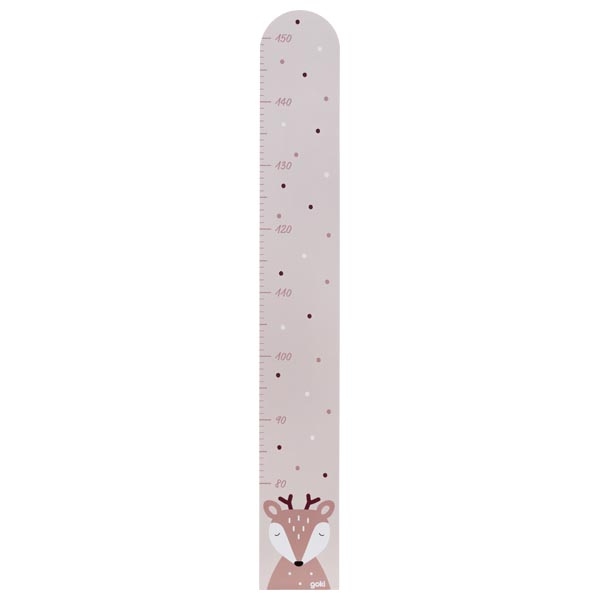 Tento drevený meter v krásnych pastelových farbách zdobí motív jelenčeka. Rodičia si môžu na ňom označovať výšku dieťaťa a sledovať ako rýchlo rastie. Mierka na metri je od 80 do 150 cm, zo zadnej strany má urobený výrez na zavesenie. Meter nie je hračka, ale závesná dekorácia.