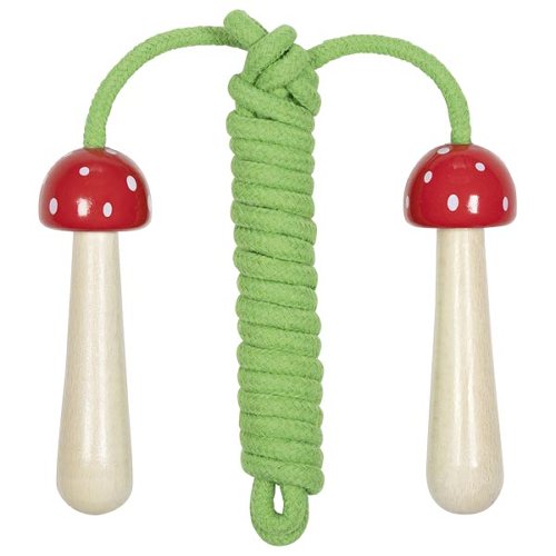 Krásne drevené švihadlo s farebnými drevenými rukoväťami v tvare muchotrávky poteší každé dieťa, ktoré obľubuje skákanie cez švihadlo. Deti sa pri skákaní učia rovnováhe a vytrvalosti, a zároveň si zlepšujú fyzickú kondíciu.