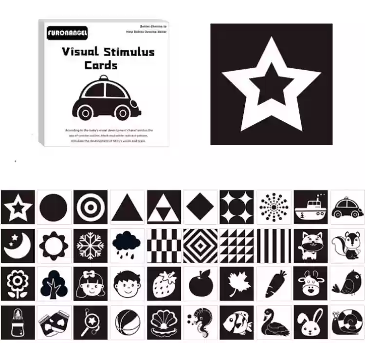Kontrastné čierno-biele kartičky sú skvelým pomocníkom pri rozvoji zraku detí, a to prostredníctvom jednoduchých obrázkov a vzorov. Kartičky zaujmú detskú pozornosť, napomáhajú pri upokojovaní, zlepšujú schopnosť koncentrácie a prebúdzajú prirodzenú zvedavosť pri spoznávaní sveta okolo. Balenie obsahuje 40 obrázkov na 20 obojstranne potlačených odolných kartičkách. Sú vyrobené z ekologického papiera, umývateľné vlhkou utierkou. Obsah balenia môže obsahovať mierne odlišné obrázky ako sú zobrazené na fotkách.